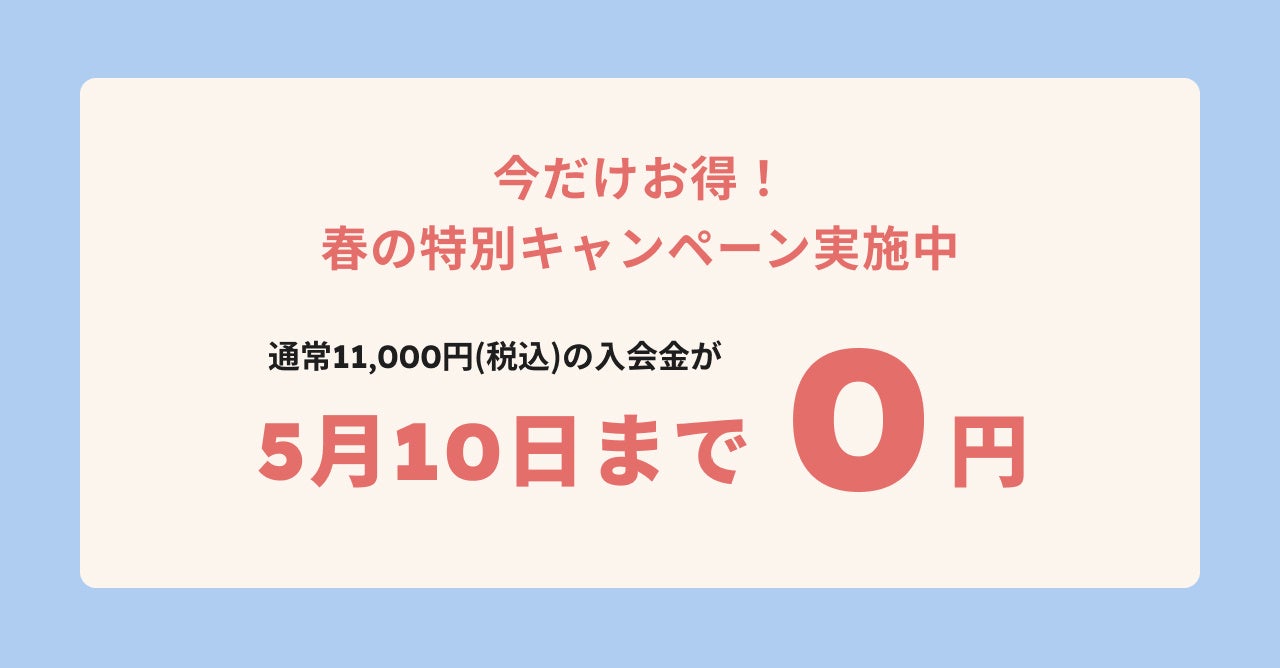 2023年3月21日(木)から5月10日(金)までにご入会いただくと、入会金が無料になります。