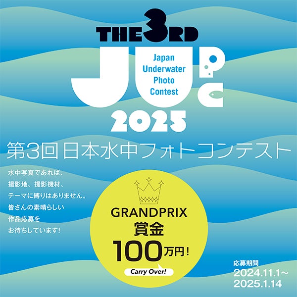 日本水中フォトコンテスト実行委員会(実行委員長:大村謙二)は、2024年11月1日より、第3回「日本水中フォトコンテスト」の応募作品受け付けを開始いたします(応募締め切り:2025年1月14日)。日本を代表する水中写真家が審査し、グランプリ賞金は100万円。水中写真であれば、撮影地、撮影器材、テーマに縛りはなく、どなたでも応募することができます(ただしアマチュアに限る)。