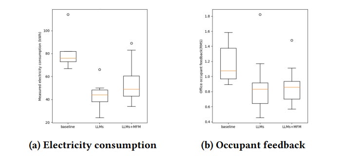 本システムの性能は、生成AIモデルの制御下におけるHVACシステムの電力消費量と、ベースラインシステムの電力消費量を長期間にわたって比較することで評価しました。その結果、ベースラインと比較して、電力消費量が最大47.92%削減され、従業員の快適性が最大26.36%向上することが実証されました(図3参照)