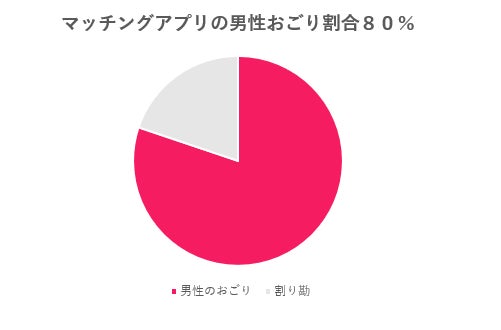 まず、マッチングアプリで出会ったふたりのおごり・おごられ状況。男性がおごった割合が80%となっています。マッチングアプリは婚活も恋活も色々な思惑が入り組んでいることが多いと考えられますが、初回デートは男性がおごった割合が3つのうちで一番多かったです。