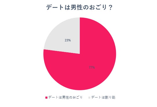 まず、実際のデートの現場では男性のおごりが77%となっていました。アンケートは婚活男女両方に実施しておりますし、当然ながらデートの話は独身時代のデータとなっております。また、婚活を前提とした話なので、回答者の年齢層も比較的若くなっております。