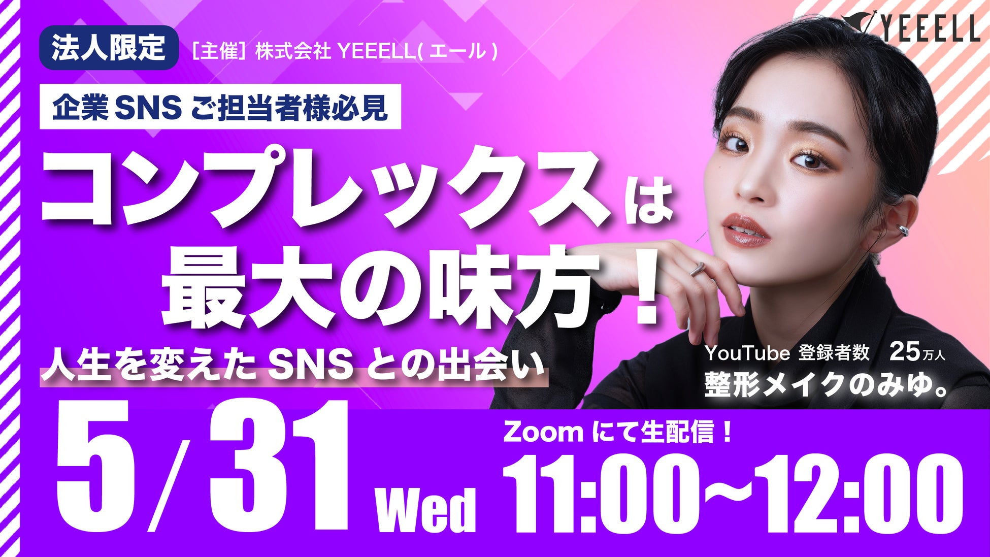 【企業SNSご担当者様必見】YouTuber歴8年整形メイクのみゆ登壇!人生を変えたSNSとの出会い《5/31(水)11:00~》