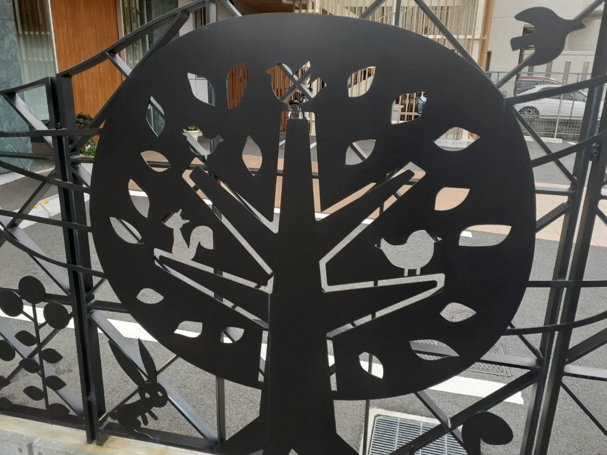 安全性を確保しつつ、こどもたちが楽しめる空間を提供するために、鉄工所が持つレーザーカットやプレスの技術を駆使して、フェンスのデザインに工夫を凝らしました。具体的には、レーザーカットで精密に抜かれたや木や鳥、ウサギ、そして保育園のロゴなどをフェンスに取り付けました。これにより、フェンスは単なる安全対策だけでなく、こどもたちの想像力を刺激し、遊び心を育む場となりました。