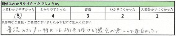 ●今まで受けた研修の中で、最も有意義で役に立つ内容だと思った。