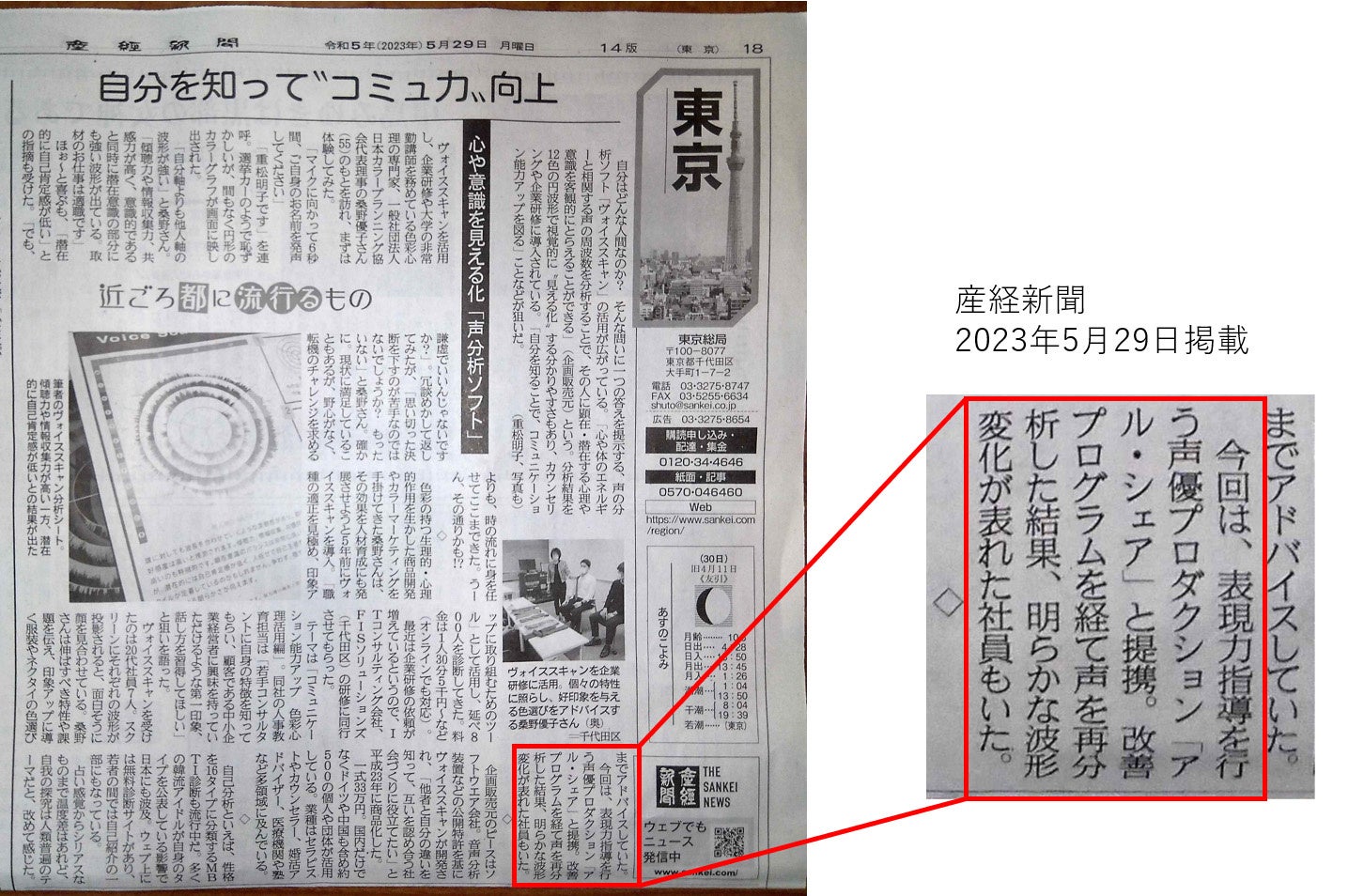 ※2023年5月29日の産経新聞にも声の診断、声のコンサルの記事が掲載されました。