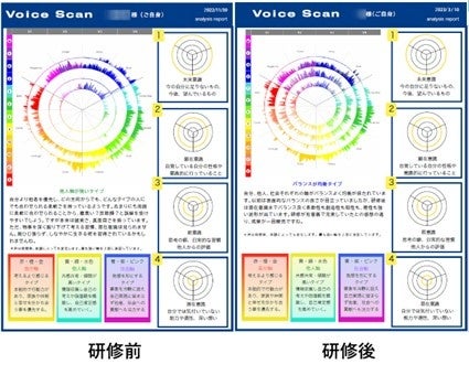 そして研修実施後、再度「声の診断」を行い、ビフォーアフターで改善されている点を確認していきます。