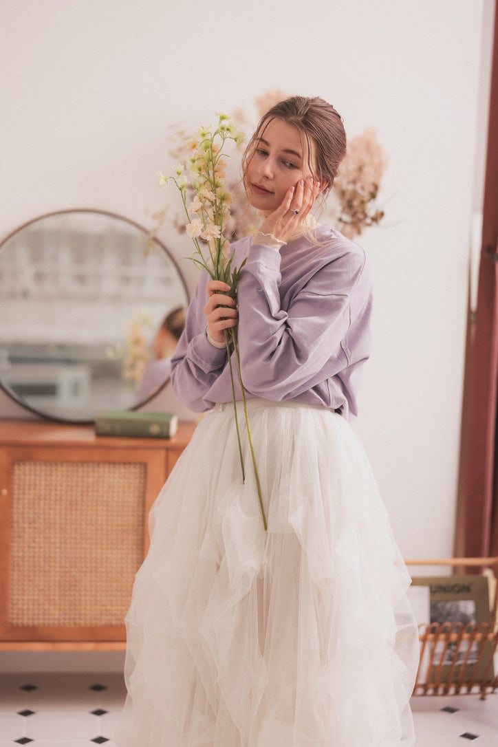 milk moonゆるロングTシャツには成長を表す満ちていく月のモチーフ