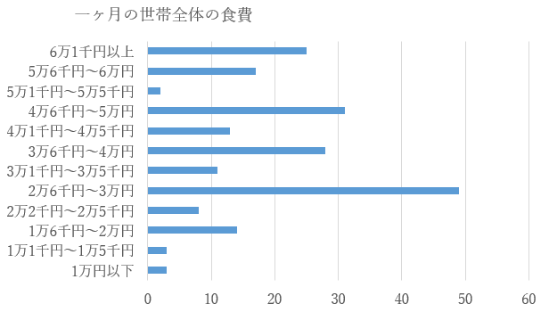 一ヶ月の食費は2万6千円~3万円が一番多く、一人あたりの食費に換算すると1日332円でした。(中央値の総額を世帯合計総数で割り算出)また、節約のために食費を抑えているとの回答が9割を超えました。