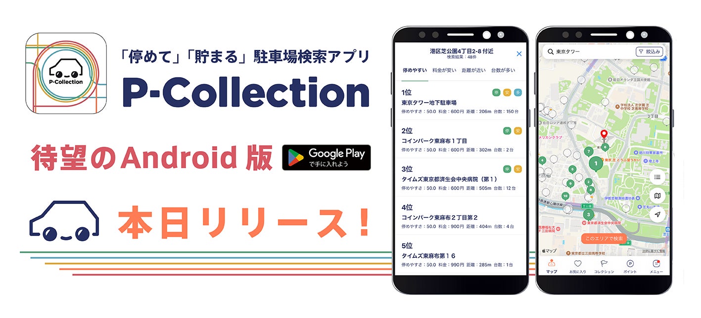 秋の行楽シーズンに向け、おでかけ・旅行・ドライブデートを、お得に・快適に・安全に!駐車場検索アプリ「P-Collection(ピーコレクション)」Android版ついにリリース!