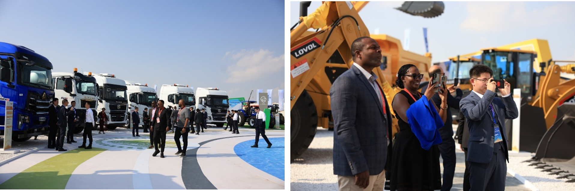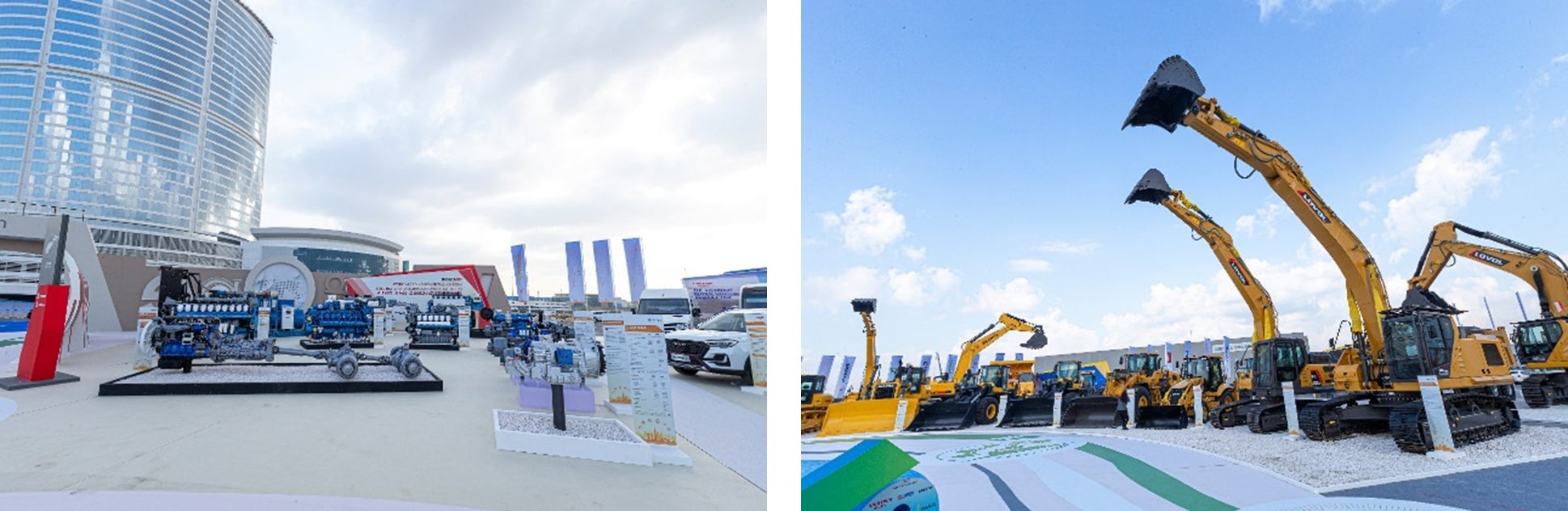 会場では、本体熱効率50%を突破したゴールドパワートレイン、Mシリーズ大ボア径発電ユニット、WHシリーズハイエンド船舶動力、船舶推進システム、電気駆動橋など13の動力製品/部品が、グリーン・低炭素の動力王国を構成し、「ダブルカーボン」戦略による山東重工グループのプランを世界にアピールしました。商用車の展示エリアでは、ハイエンドトレーラー、ダンプカー、ミキサー車、トラック、ピックアップトラック、バス、スクールバス、VAN車など23台の完成車が集結し、ゲストに山東重工グループ全シリーズ商用車の優位性と世界一流に挑戦する意気込みをアピールしました。建設機械展示エリアでは、ローダー、掘削機、ブルドーザー、フラットマシンなど16台のハイエンド建設機械が傲然とそびえていました。「WeiChaiエンジン+ Linde油圧+電気制御システム」のゴールドコア競争の優位性は、多くのパートナーから賛辞を受けました。トラクター、コンバイン、車輪式穀物収穫機など5台の農業機械、電動フォークリフト、運搬ロボット、豪華ヨットなどが展示され、来場者は足を止めて見入っていました。