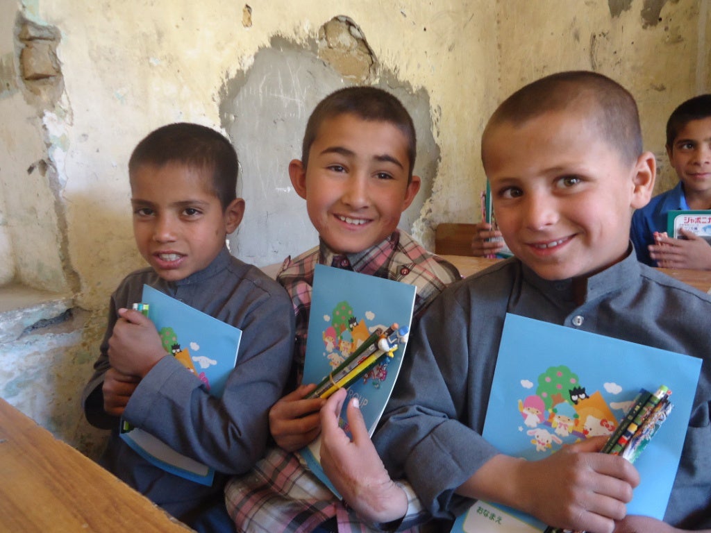 アフガニスタンの子どもたちにノート4冊セットを生徒3名に配布できます。