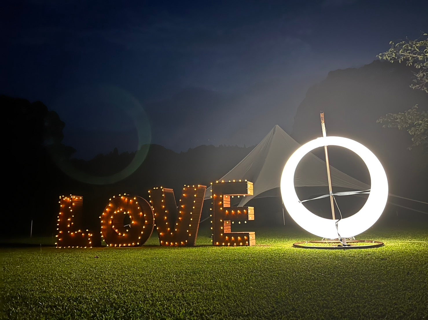 同ドッグラン施設で写真映えすると人気の「LOVEオブジェ」を電飾することで、よりお洒落に!さらにイベント限定で「月のイス」も設置しましたので、わんちゃんを乗せて最高の1枚を撮っていただきたいです。