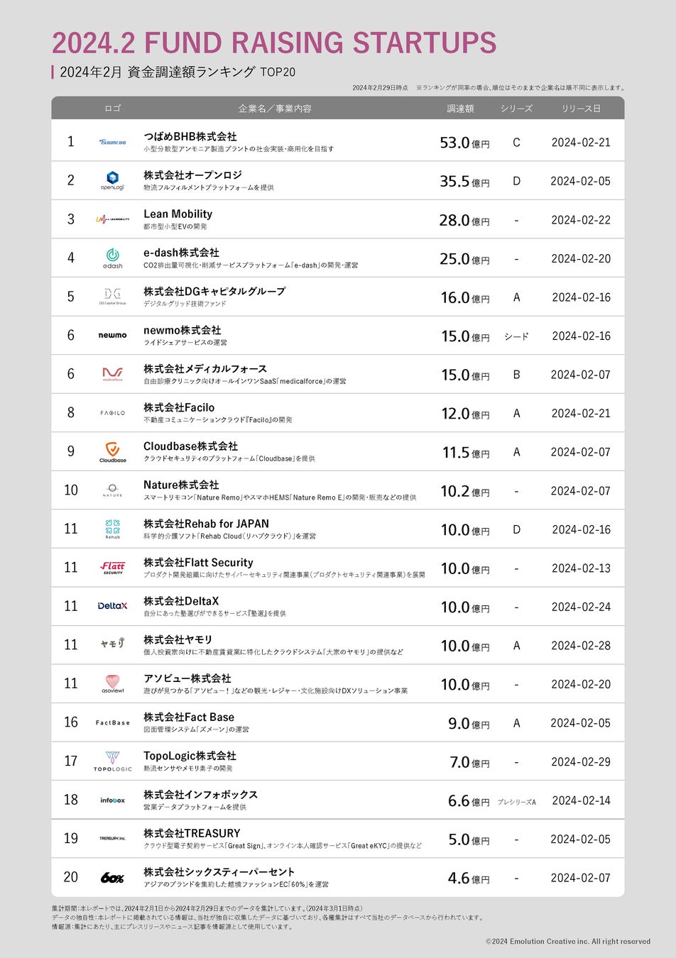 タイトル:【月刊】国内スタートアップ資金調達額ランキングTOP20(2024年2月)