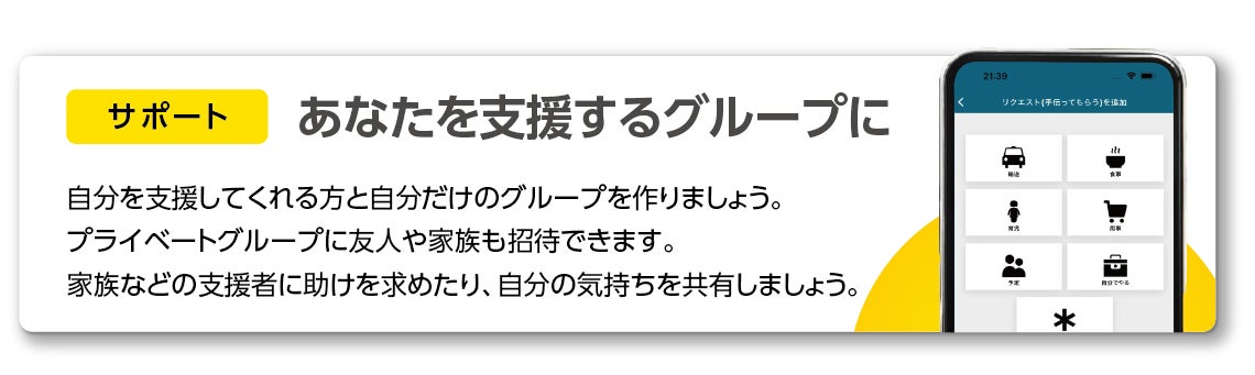 患者さんを支えるご家族や友人などの支援者を登録しグループを作成することで、健康状態の共有や、メッセージを通じた気持ちの共有が可能です。
