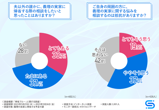 さらに、半数以上の方は、このような帰省ブルーの悩みを夫に相談できていないことも明らかになりました。