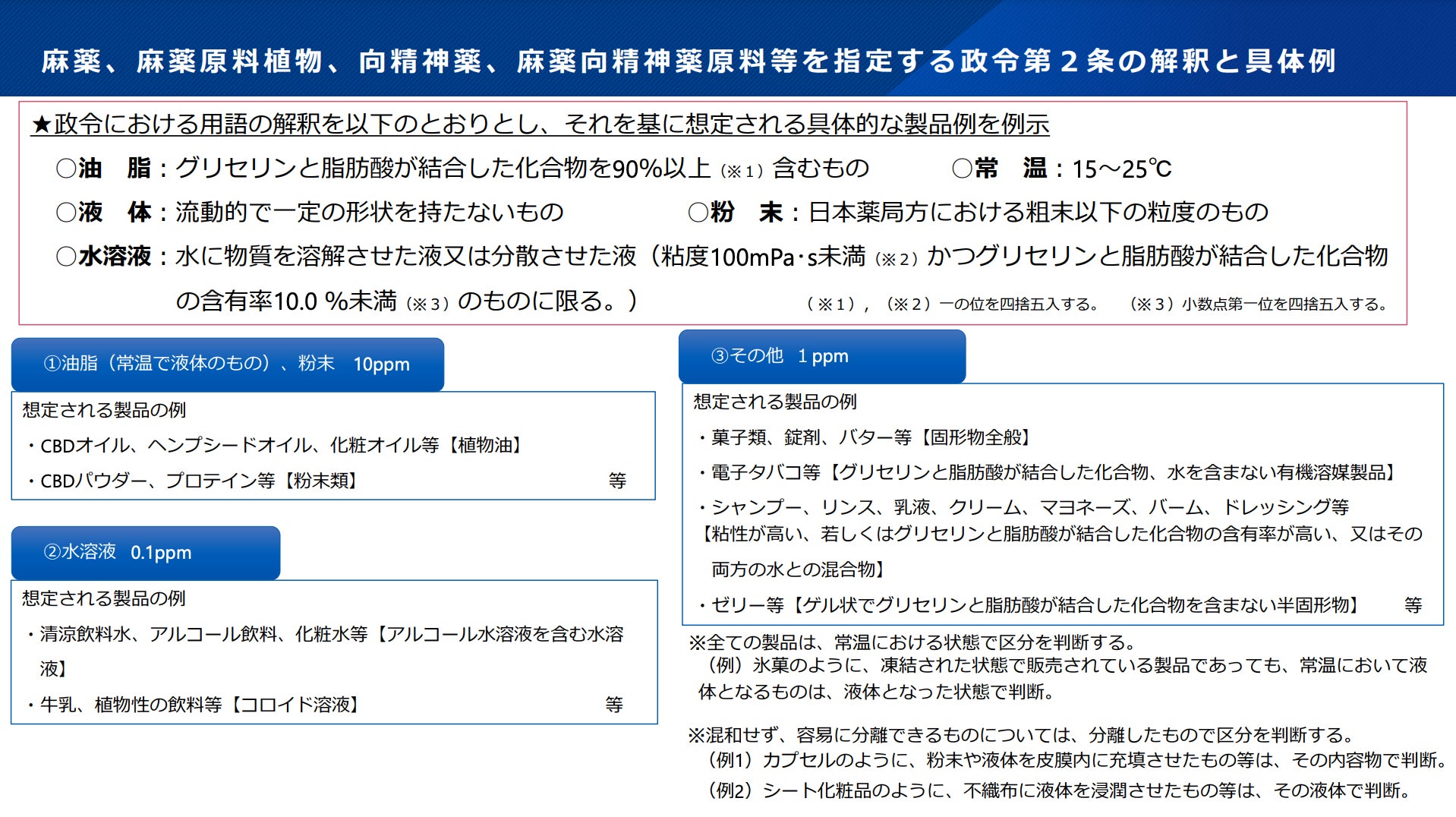 具体的には、これまでの部位規制から成分規制に移行し、THC残留限度値に明確な基準値が設定されました。