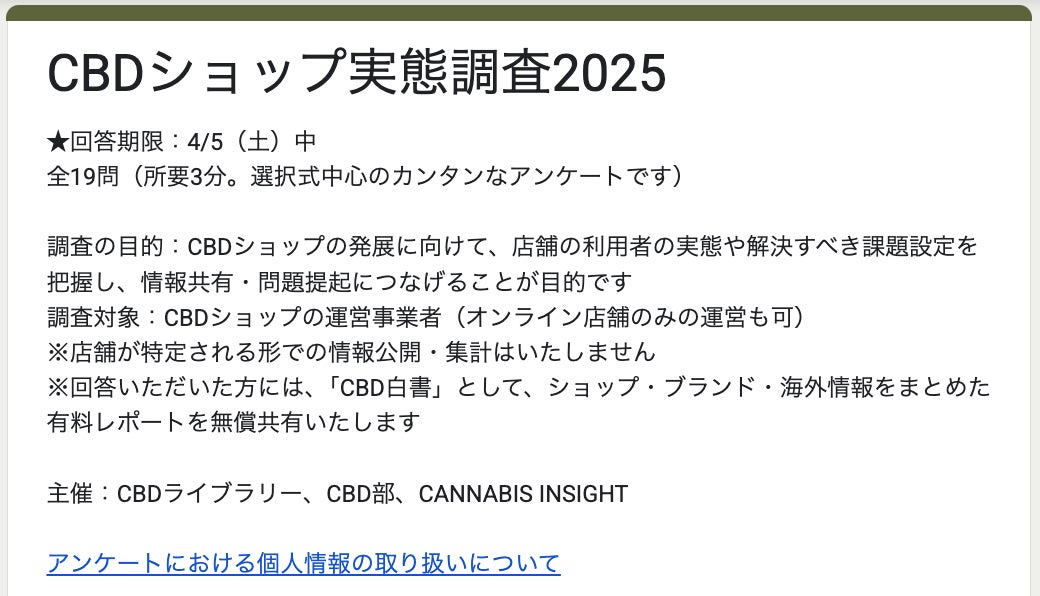 アンケートフォーム:CBD市場のリアルな状況を知るために、事業者さまの声をお聞かせください!