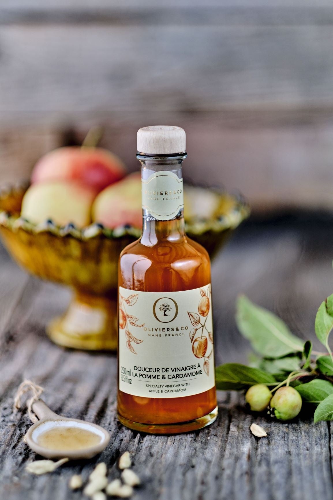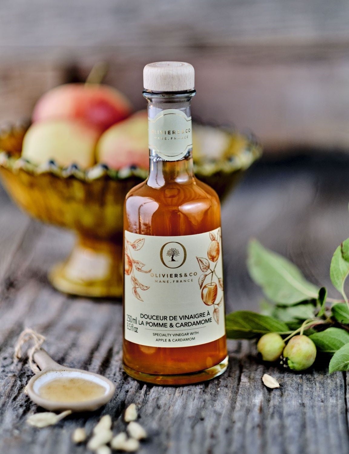 クリスマス限定で作られた今回のフルーツビネガーは、ポルトガル産のリンゴを使用し、爽やかな香りとほのかな甘みに、グアテマラ産の貴重なグリーンカルダモンのスパイシーな風味が特徴です。
