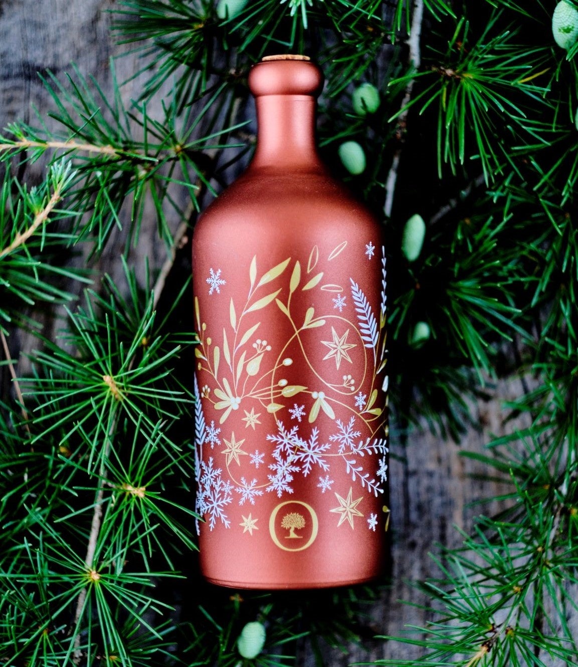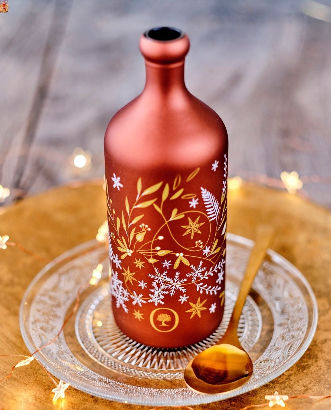 2023年の限定デザインボトルはブロンズカラーにゴールドの模様が入ったクリスマスの食卓に映えるボトルです。