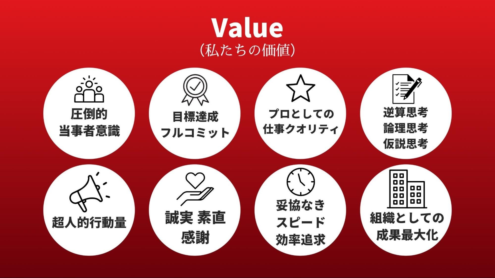 失敗を恐れずに積極的にチャレンジし、スキルアップをしてほしいと思い、この8つのValueを意識してもらうことを新卒の方に伝えています。
