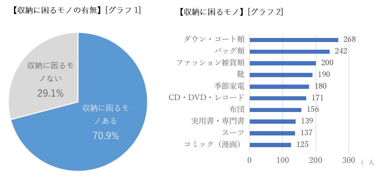 約7割(70.9%)の人が家の中のモノの収納に困っています。[グラフ1]