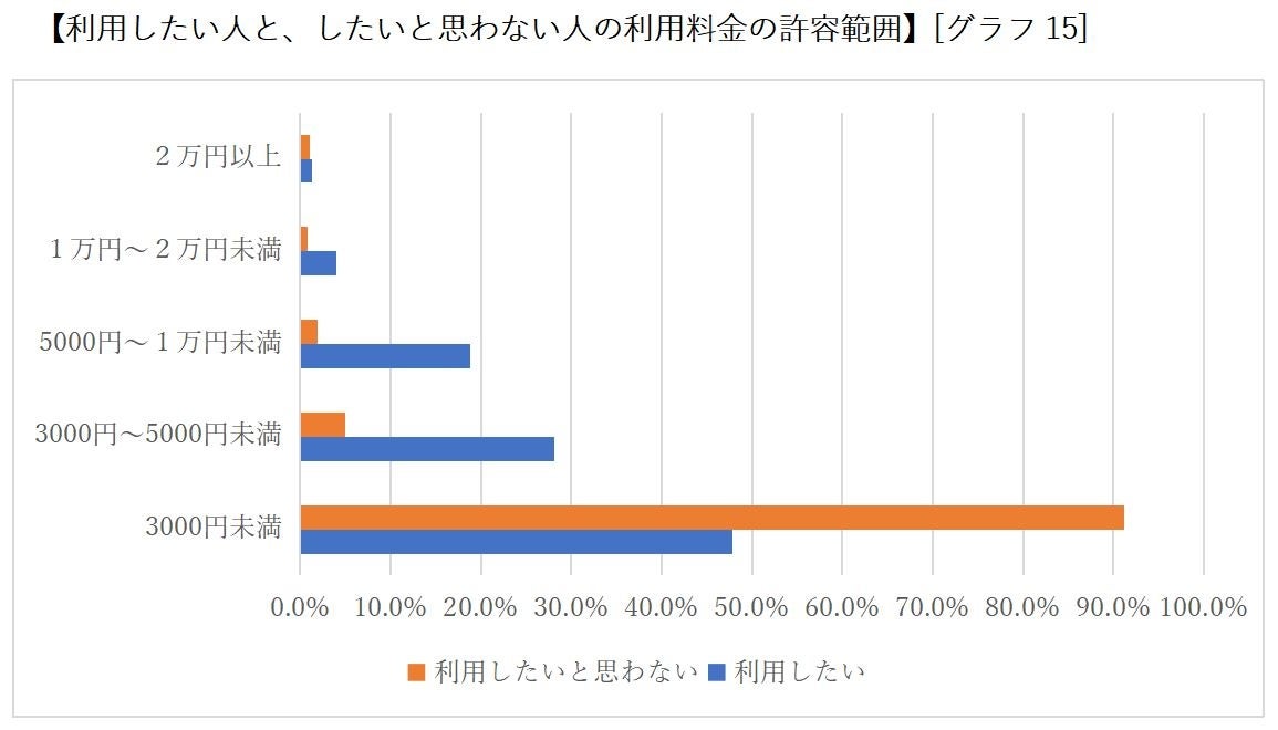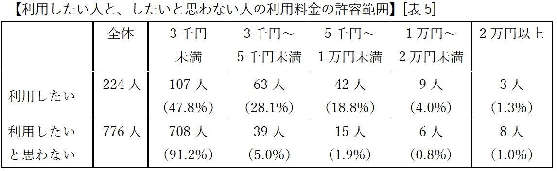 ・利用したいと思わない人は圧倒的に3千円未満が91%という結果でした。[表5]