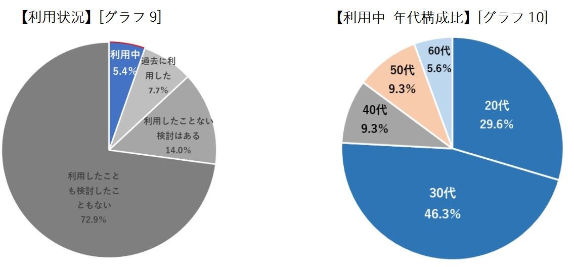 ・「利用中」を年代別にみると20~30代の若い世代が75.9%を占めています。[グラフ10]