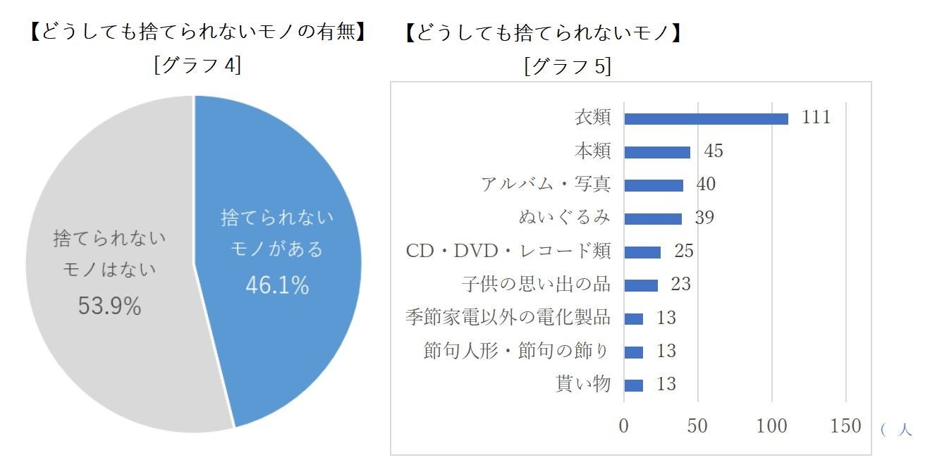 約4割強(46.1%)の人がどうしても捨てられないモノがあります。[グラフ4]