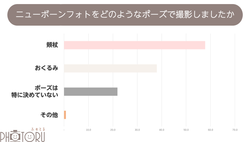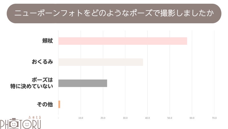 「頬杖」(222票)が最も多く、次いで「おくるみ」(146票)、「特にポーズは決めていない」(94票)という結果になりました。