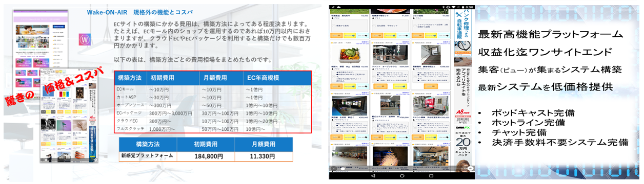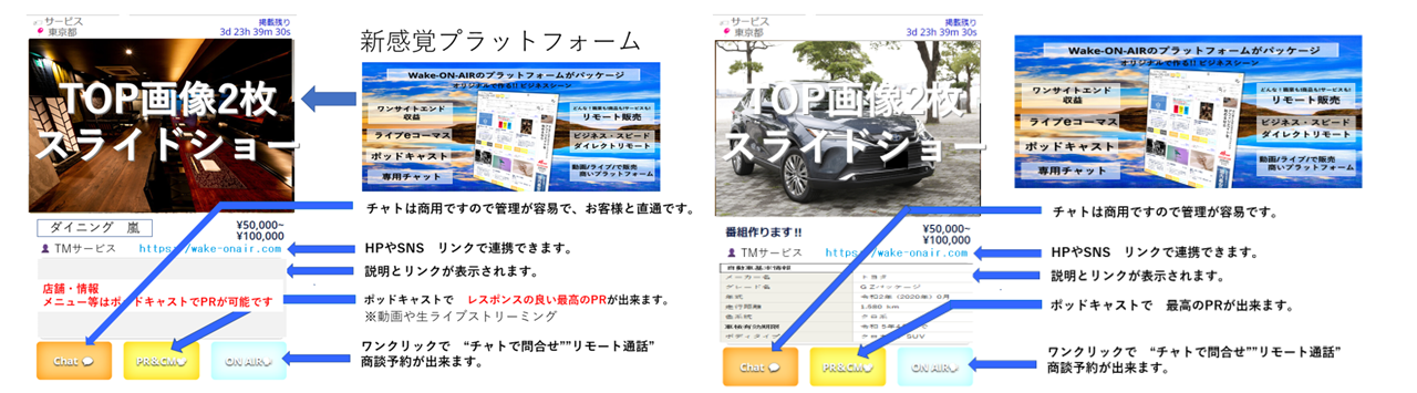 売買保証はそのまま 自社専用ECサイトとして独立も可能です、メインWake-ON-AIRと内部連動で訪問/
