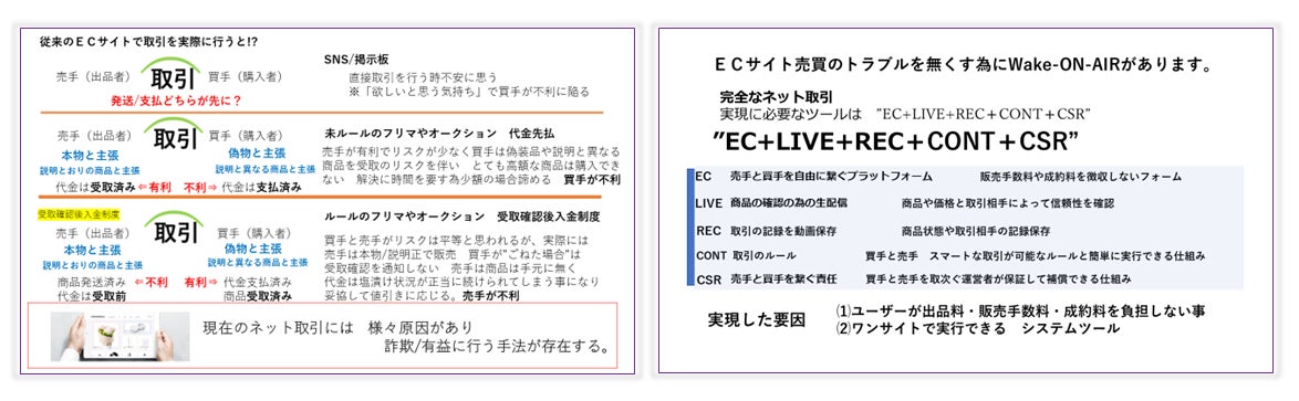 Wake-ON-AIRの目的は 安全+”個人間取引” 安全+”ビジネス取引” 完全なネット取引