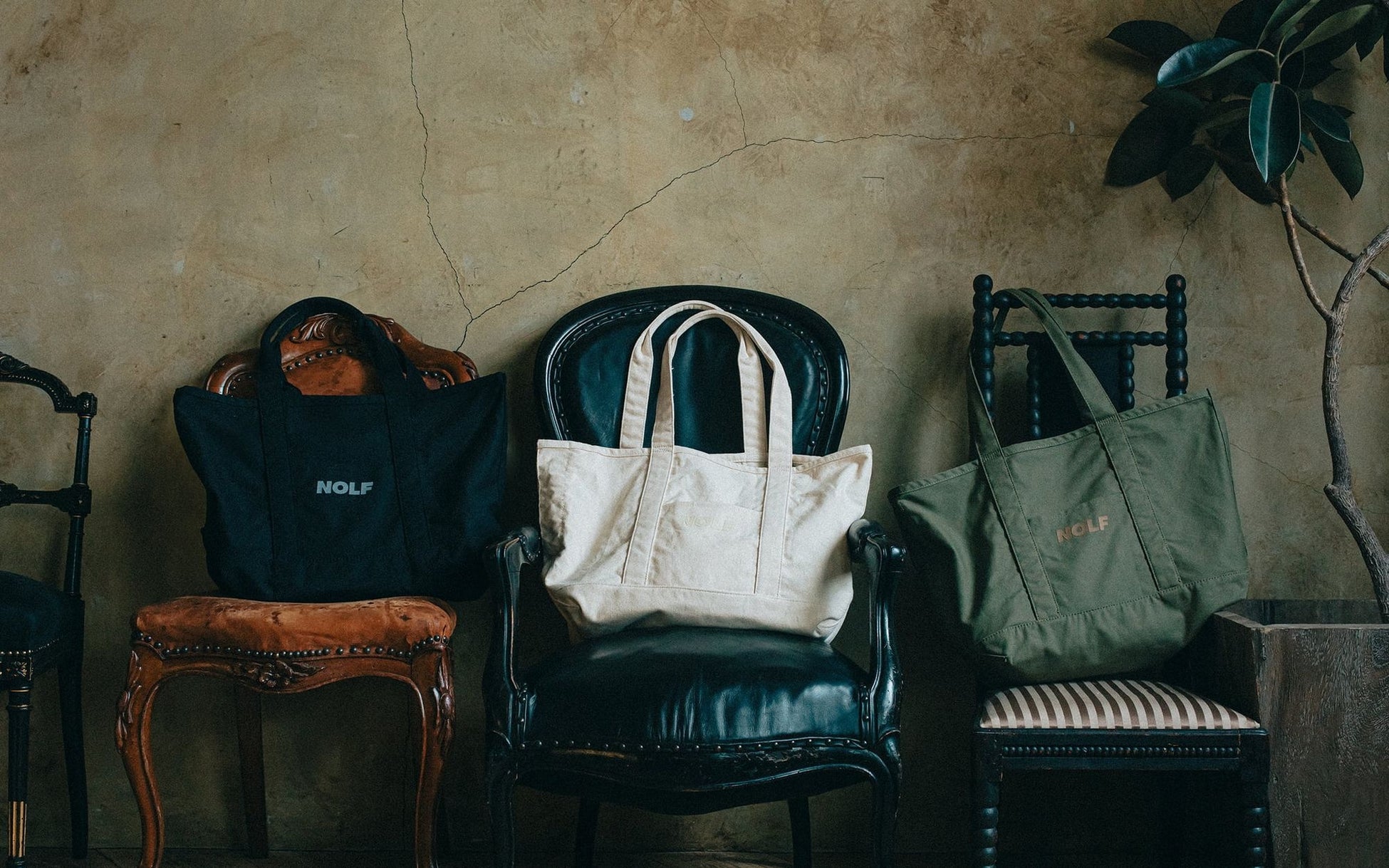 デザイン性と機能性を兼ね備えたトートバッグは、日常使いに最適です。容量約36Lの大容量で、あらゆるシーンで活躍します。Bodyカラーはブラック、カーキ、ホワイトの3色展開で、NOLFのロゴが厚盛でプリントされています。