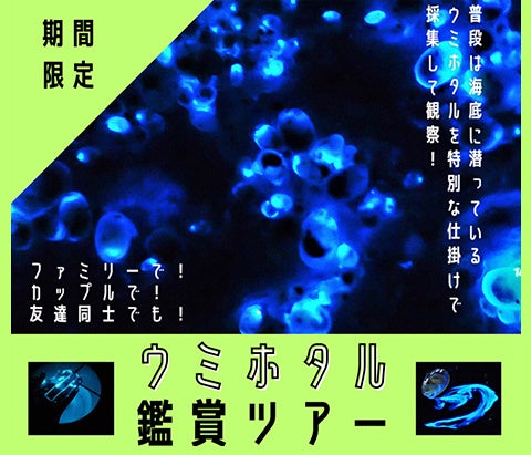 浜坂県民サンビーチにて、普段は海底に潜っているウミホタルを特別な仕掛けで採集しに出かけます。海岸沿いの様々な生物も観察することができます。