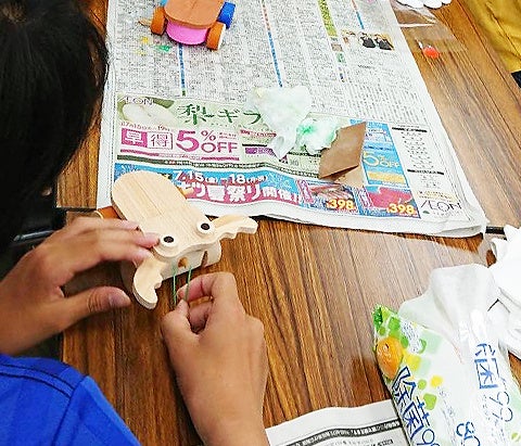 旅館より徒歩1分の「ギャラリーあとな」で、地域にある木材を使ったおもちゃを作ります。自由に色を塗る、組み立てるという工程を体験して、自分だけの木のおもちゃを作ります。