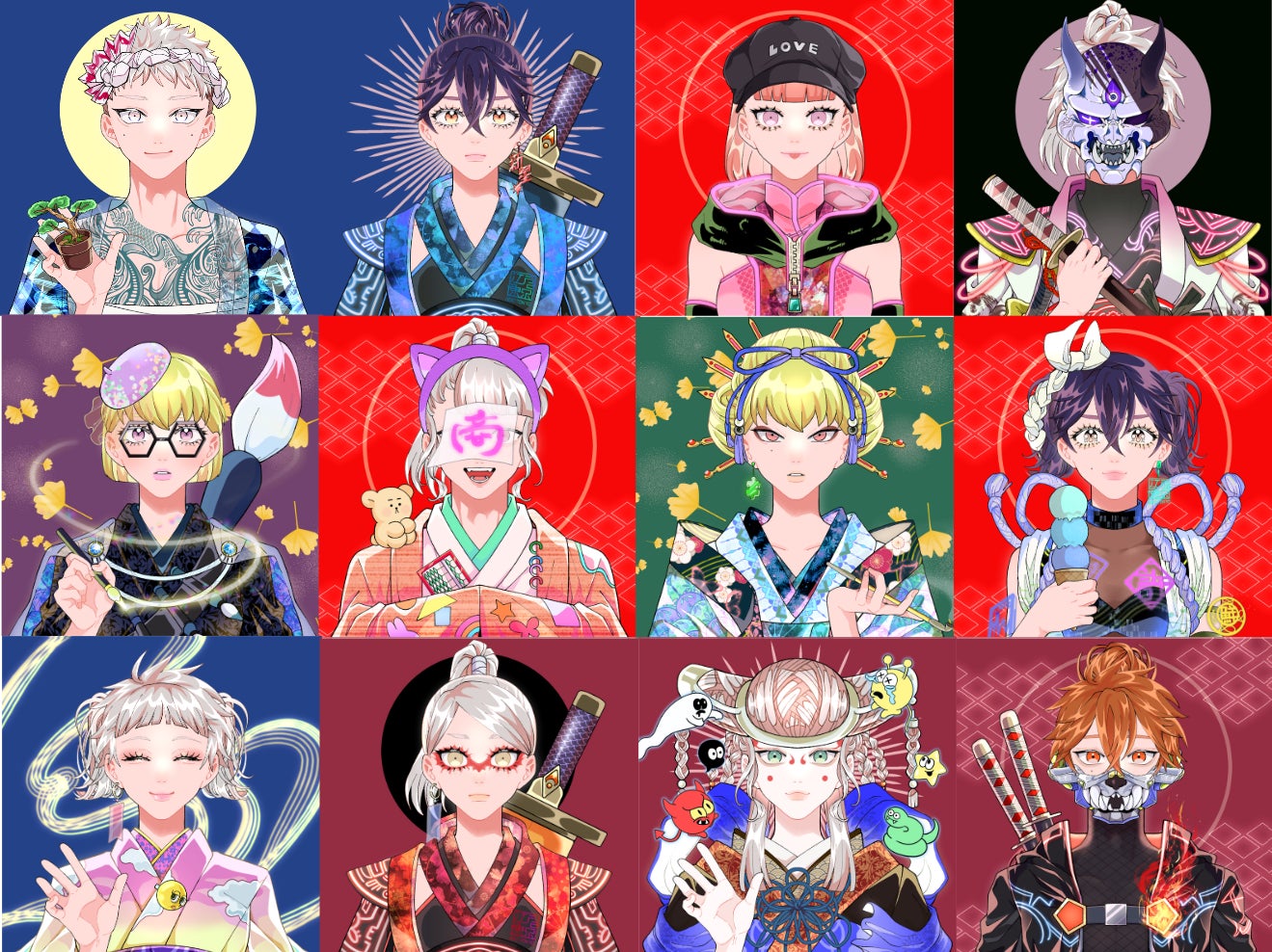 アイリダを構成する3つの異なる世界(近未来的なバーチャルシティ『メトロポリタン』、江戸時代風の日本家屋が並ぶ『EDO TOKYO』、大自然が広がる『ネイチャーワールド』)より、今回は『EDO TOKYO』の世界観を表現した1,111体のNFTを販売します。