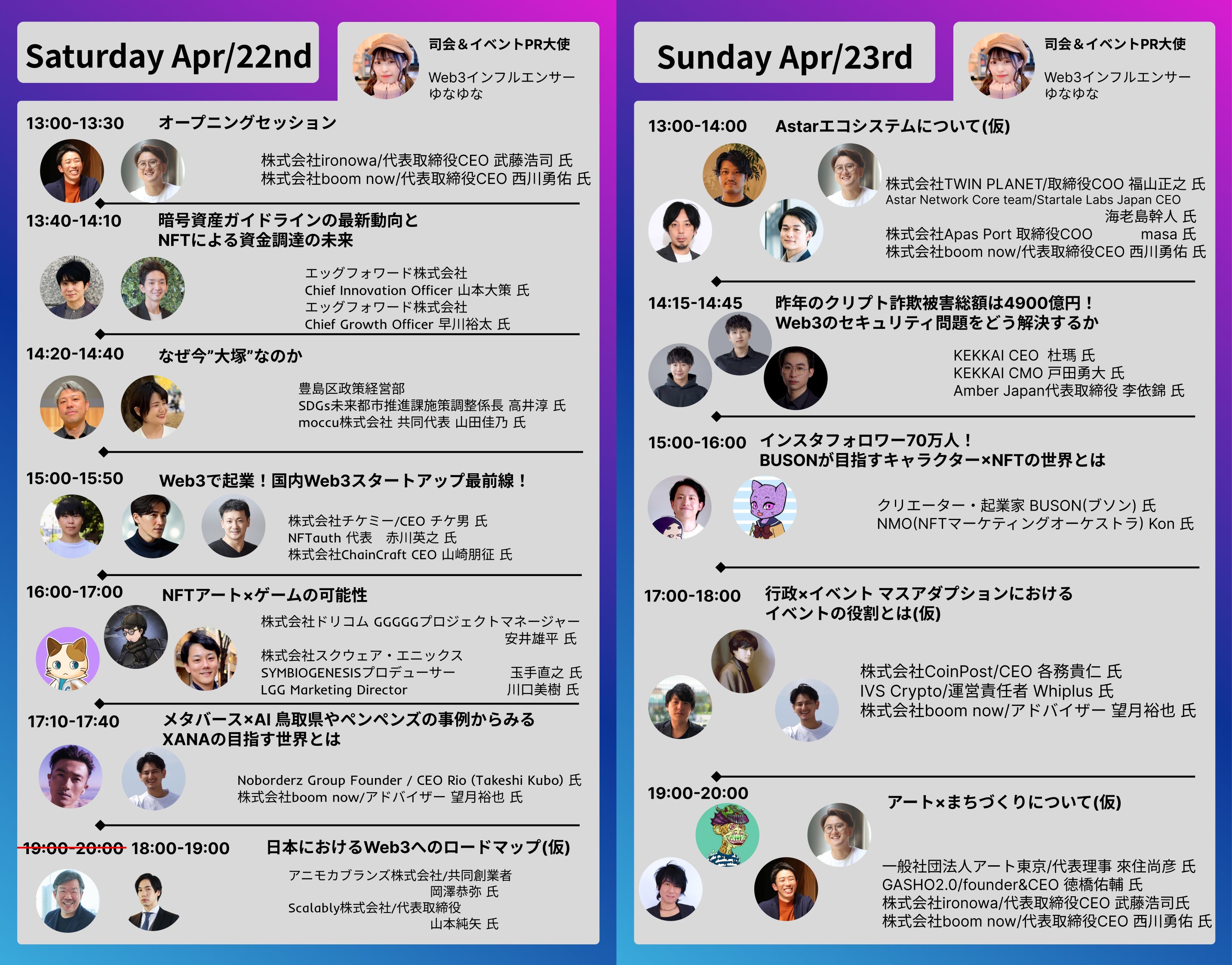 グローバルIT産業へと発展していくWeb3系の企業が池袋や大塚の地に本社機能を置き、豊島区にWeb3系の若い起業家や企業を呼び込み、日本におけるWeb3・NFTの中心地にしていくために本イベントを開催いたします。