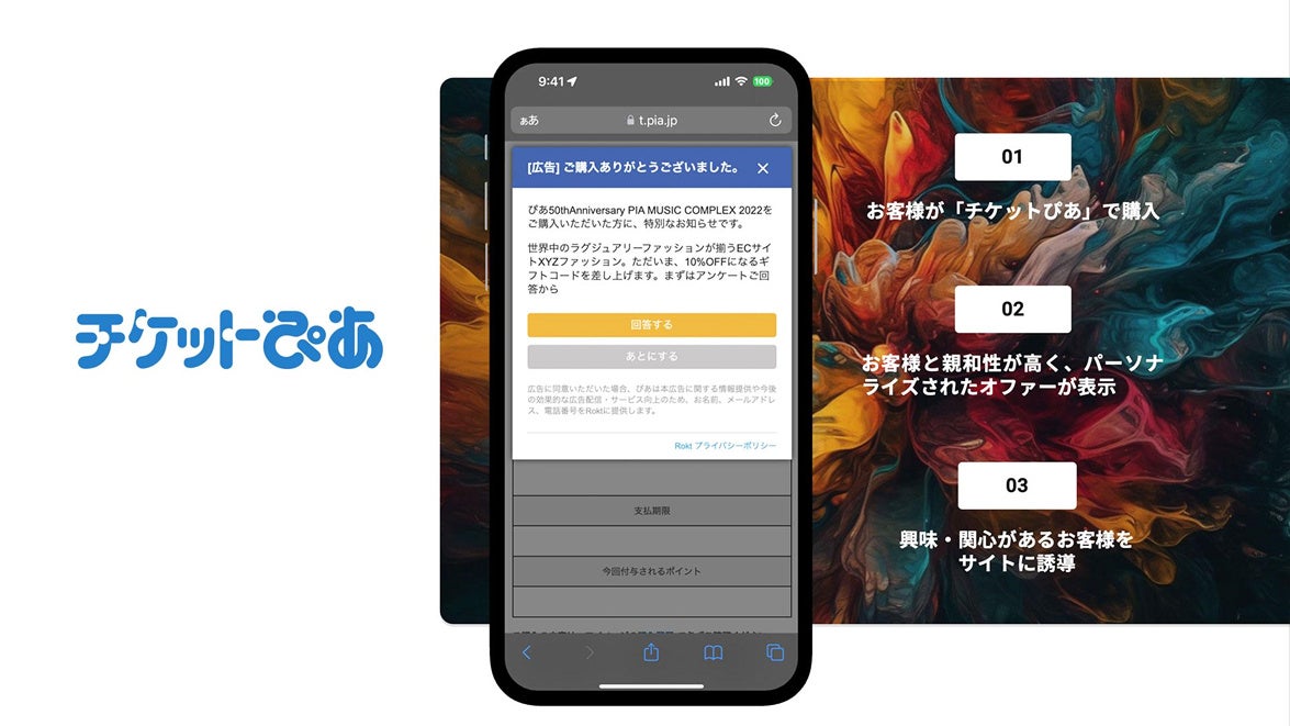 日本最大級のチケットサイト「チケットぴあ」がRoktと提携し、購入完了の瞬間にメッセージを届ける「PIA Premium Engagement Ads #Post Purchase」を提供開始