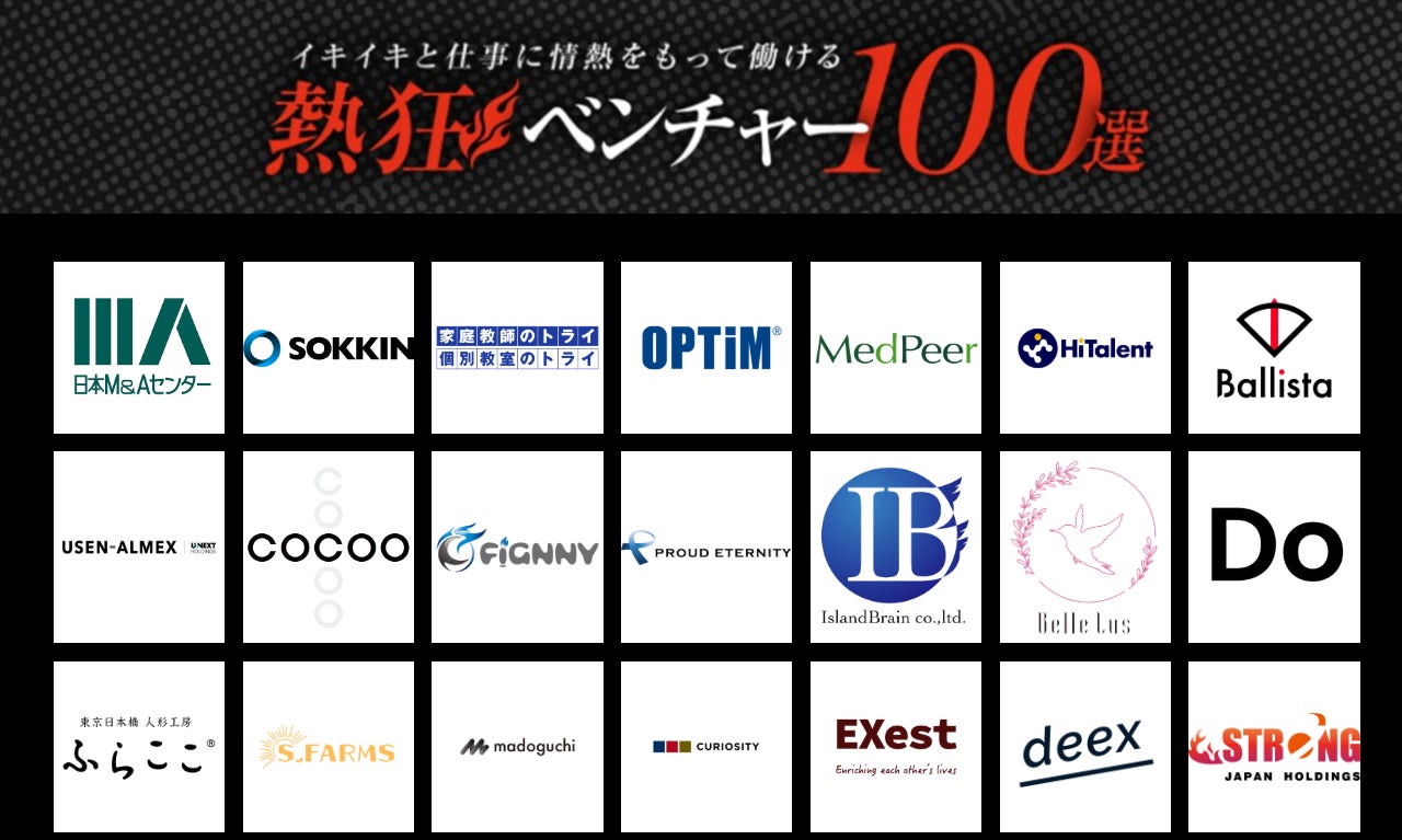 このような基準のもと、弊社では「熱狂ベンチャー100選」を選定しております。