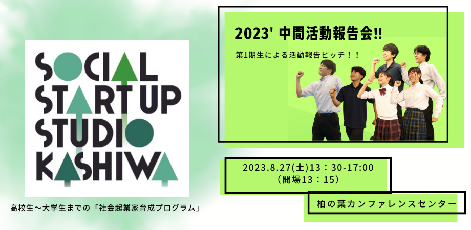 8/27(日)開催:SOCIAL STARTUP STUDIO KASHIWA 中間報告会