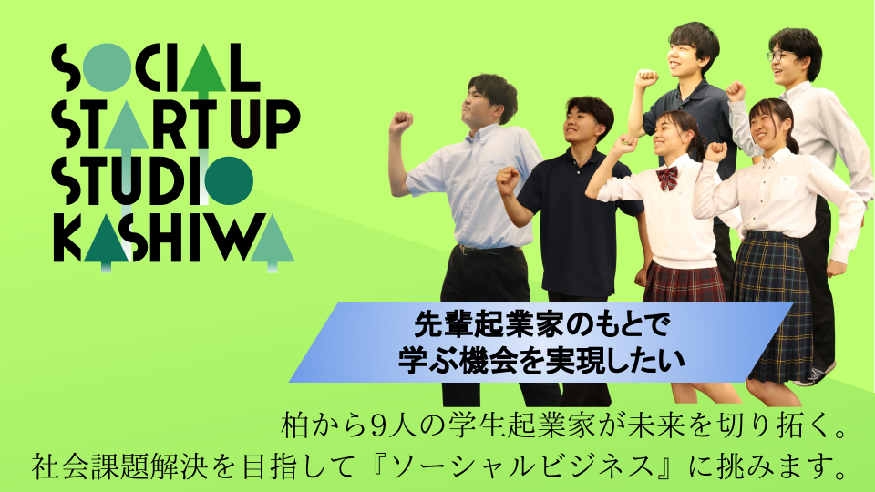 「柏から世界へ!」をテーマに始動した「SOCIAL STARTUP STUDIO KASHIWA」(https://www.iconic-beat.net/socialstartupstudio)は、16歳以上の社会人経験を持たない学生を対象とした、3年間の社会起業家育成プログラムです。