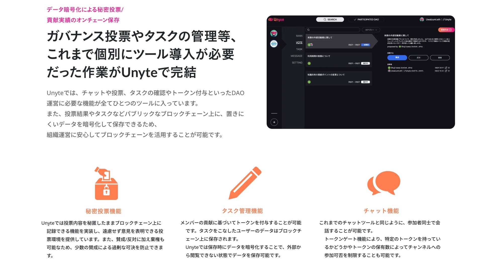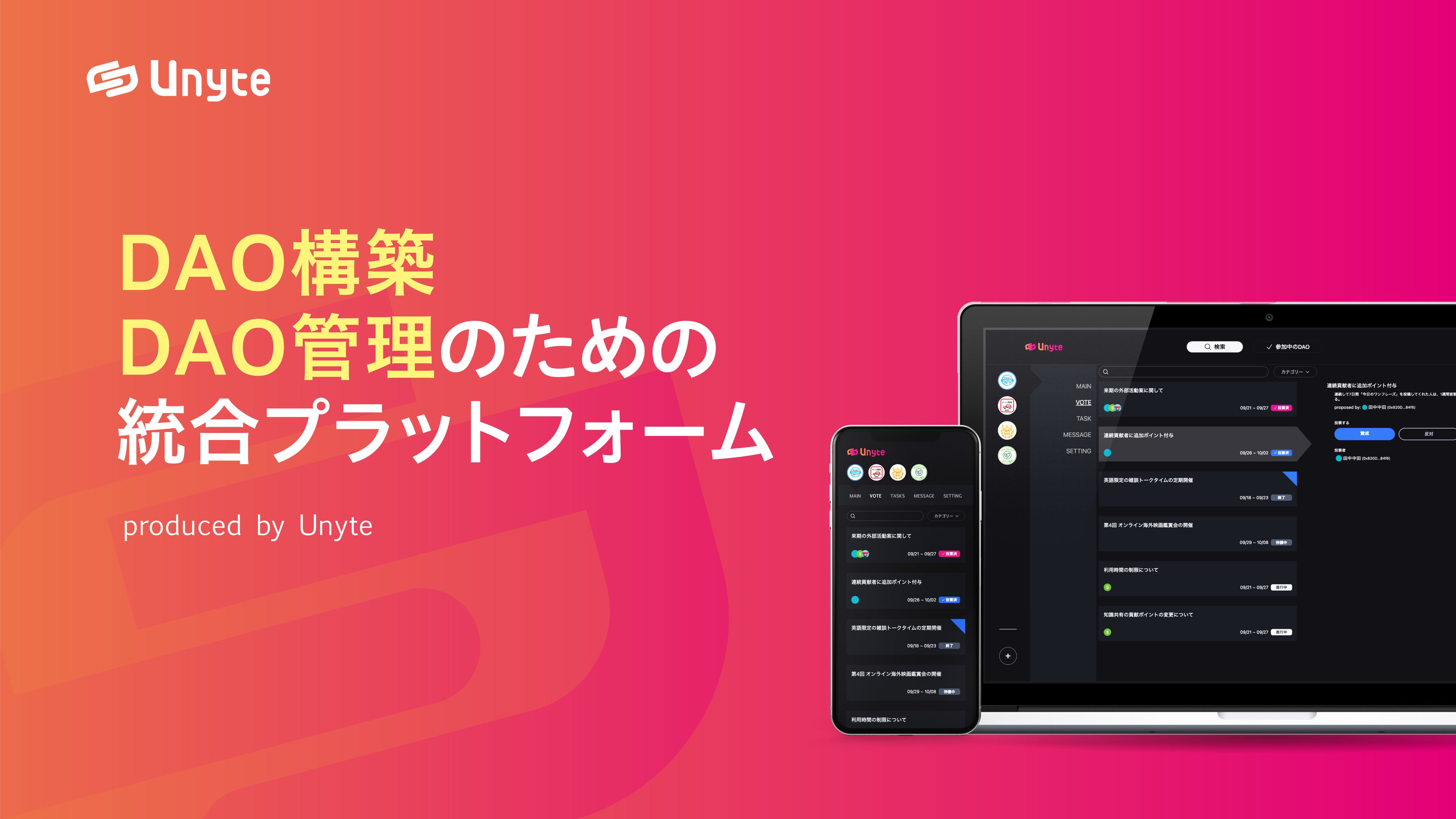 統合プラットフォーム「Unyte(ユナイト)」は、ブロックチェーン技術を用いてコミュニティやDAOの構築および高度な管理を支援することを可能とするプロダクトです。