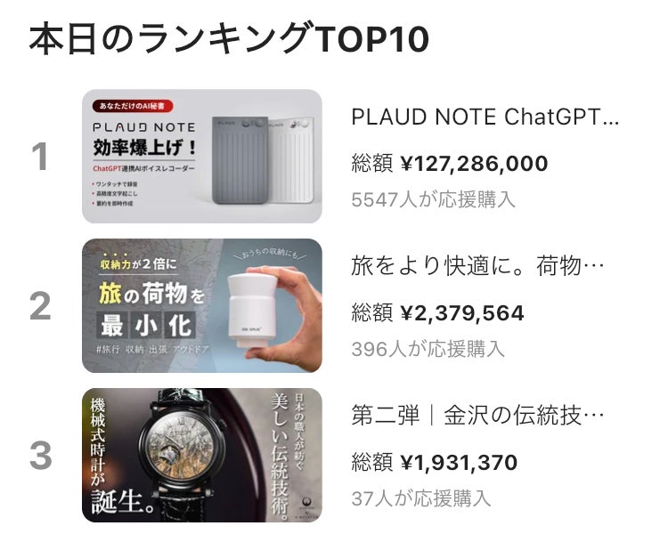 公開初日のランキング:総合2位、ファッション1位、アウトドア1位