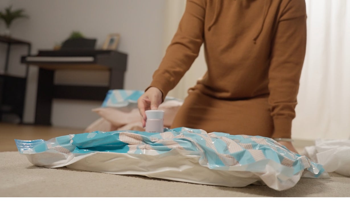 圧縮袋内の空気をポンプで排気することで、衣類を小さくまとめることができ、その結果、キャリーケースに新たなスペースを生み出します。