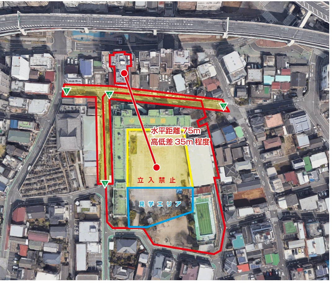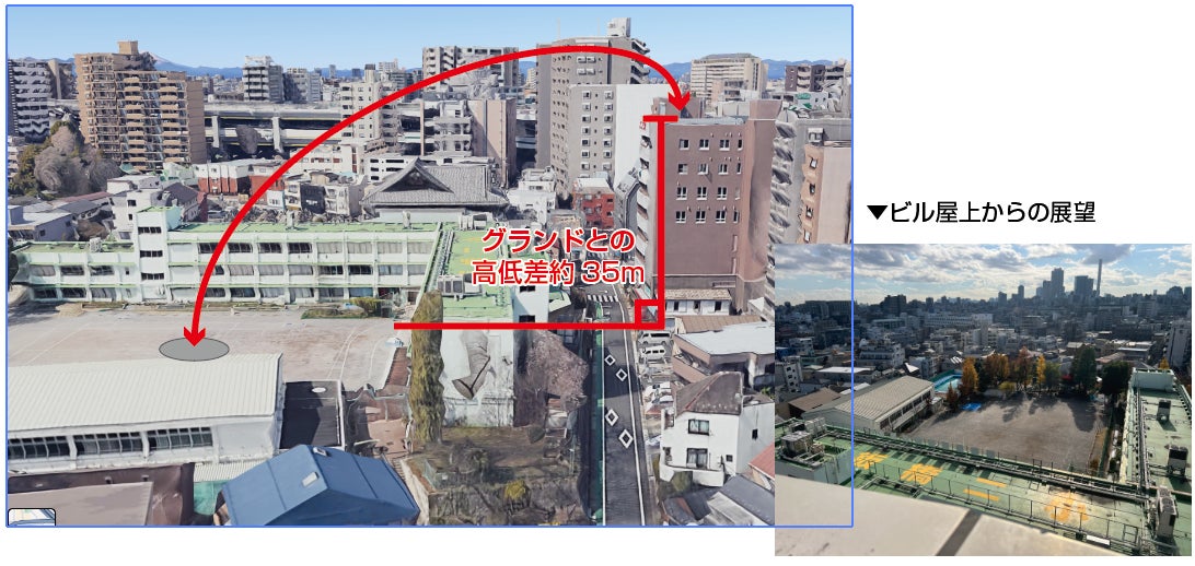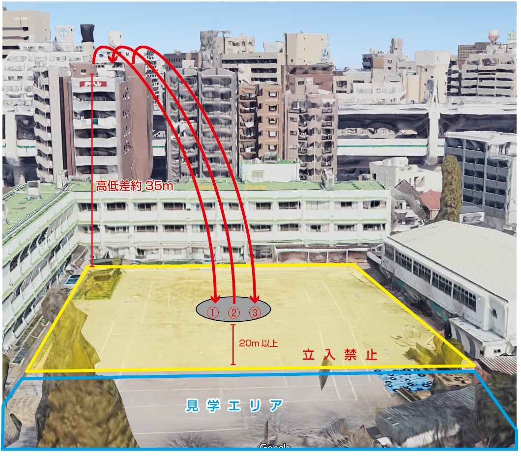 場所:板橋区立板橋第二小学校グラウンドおよび近隣ビル(高さ42m)の屋上