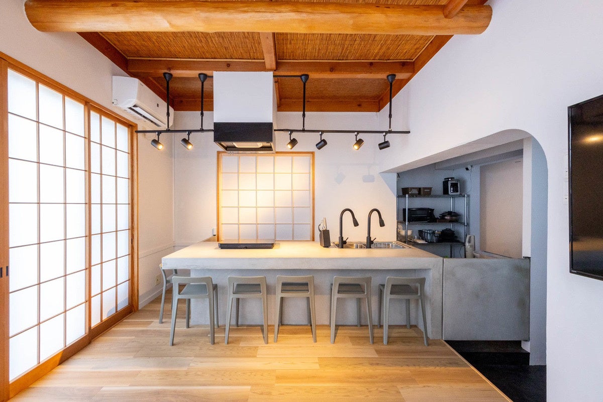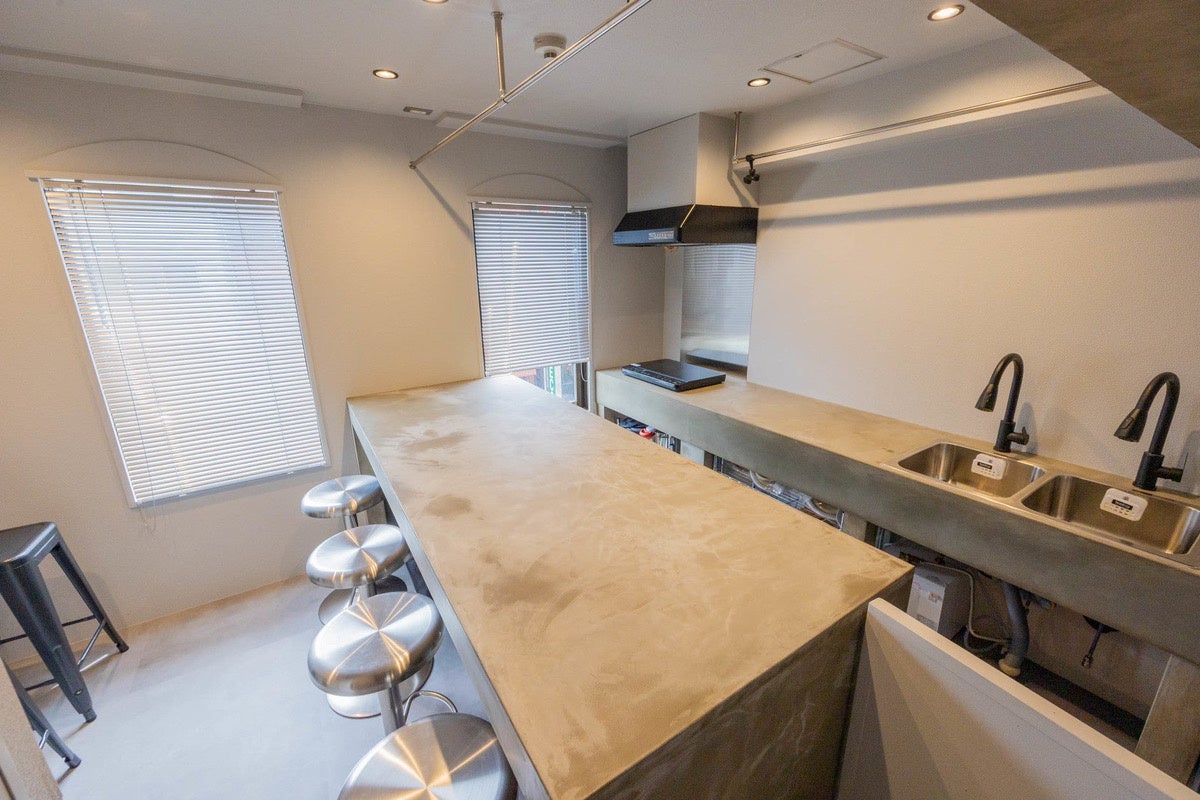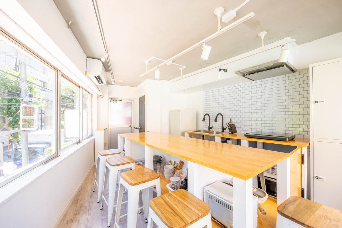 一般的なレンタルスペースとは違い、キッチンメインのSNS映えするお洒落空間をに仕上げることで、用途の幅が広がります。