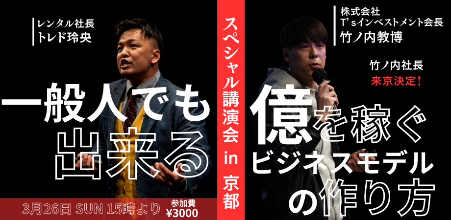 あの大社長が京都に⁉ 連続起業家竹ノ内社長による特別講演会「億を稼ぐビジネスモデルの作り方」を京都で開催!