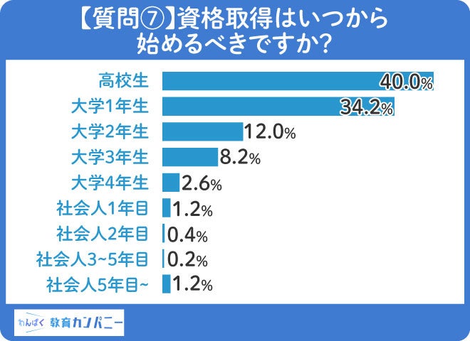 【質問⑦】大多数の人が「資格取得の勉強は高校生から始めるべき」と早めを推奨