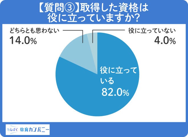 「取得した資格は役立っていますか」というアンケートについては、「役に立っている」と感じている人は82.0%でした。