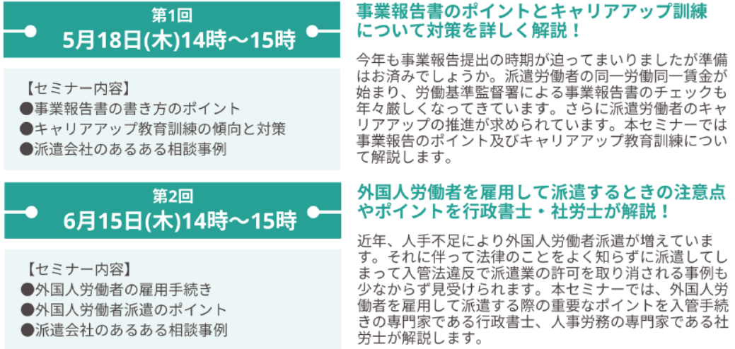 1.「派遣会社の労務管理お役立ちWEBセミナー」開催!