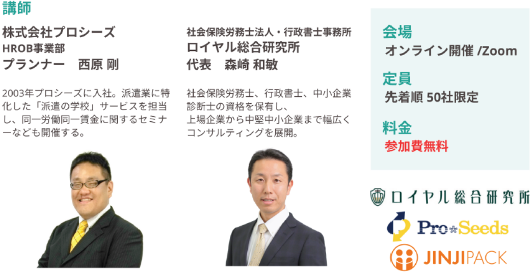 社会保険労務士法人ロイヤル総合研究所が主催する無料オンラインセミナーのご案内です。